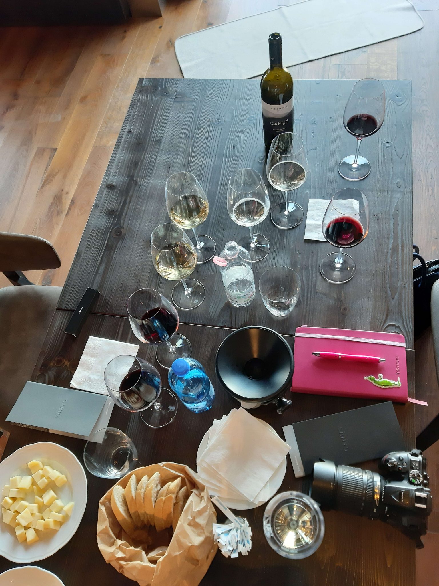 Prima di passare ai rossi Elisabetta non vuole farmi mancare l’assaggio del Gramogliano Bianco DOC Friuli Colli Orientali 2018 (13,5° alcol). E’ l’anima bianca di Canus che porta il nome del colle su cui siamo. Racchiude armoniosamente Sauvignon, Friulano, Ribolla gialla e Pinot grigio. Fresco, fruttato e con note balsamiche di timo. Regala una delicata vaniglia al retrolfatto, buona acidità e morbidezza al palato. Racchiude il sole e il vento di queste colline. Esprime l’equilibrio dei Colli Orientali e dei suoi vitigni bianchi, declinati al meglio a seconda dell’annata che la natura dona.
