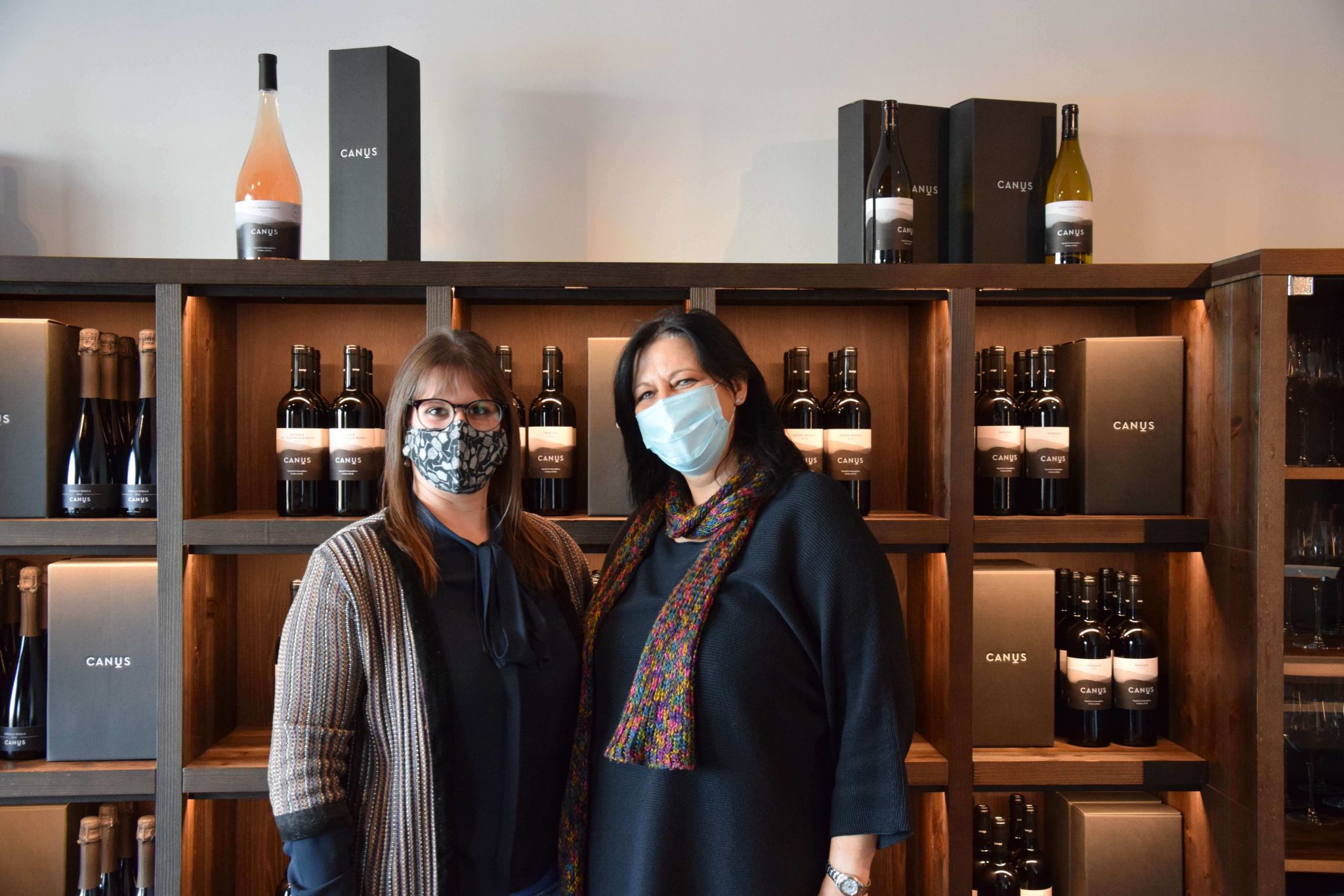 Elisabetta (che si occupa delle visite e degustazioni) e Simone (che si occupa dei vigneti e della cantina) mi accolgono in azienda mentre sulle colline soffia una fredda e forte bora; sopra di noi il cielo è terso e il sole brilla sugli accenni di primavera. Ci affacciamo dalla terrazza panoramica dell’azienda ed ammiriamo le colline che ci circondano. Da qui iniziano a raccontarmi la storia di Canus.